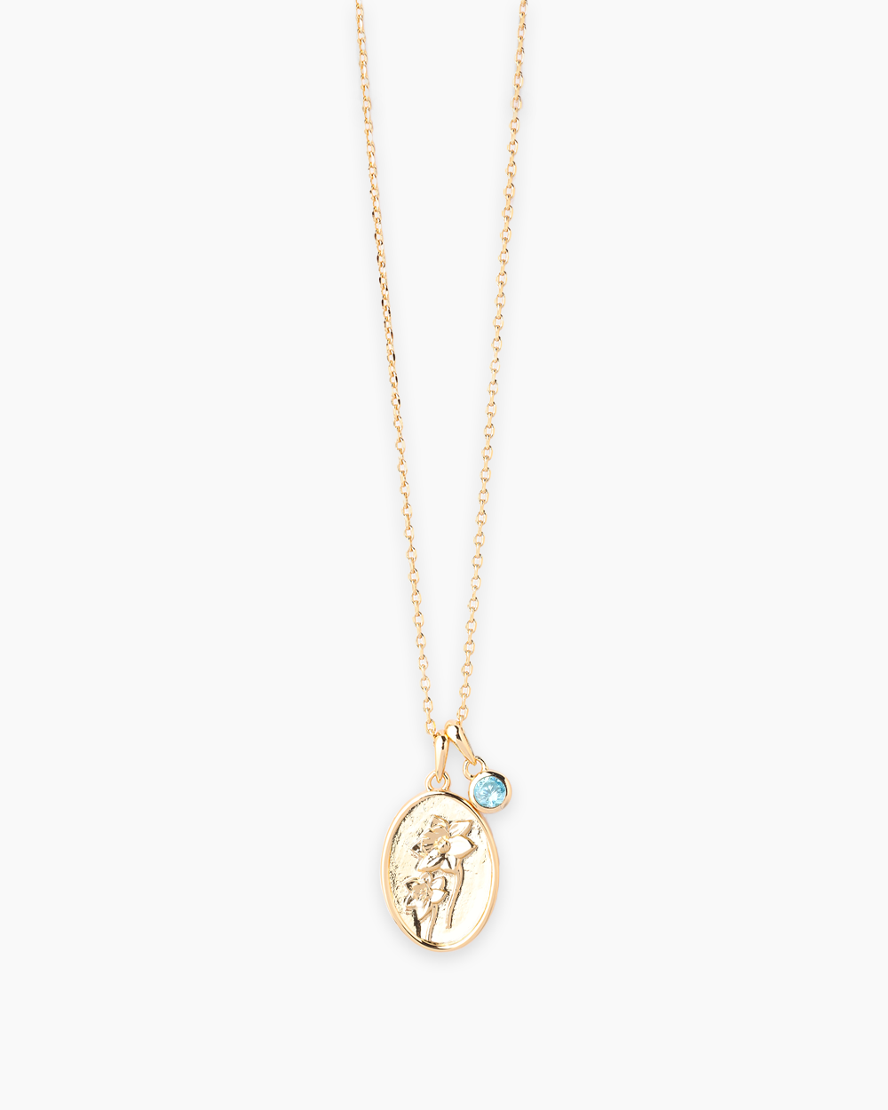 Celebrate your birth month with the Birth Flower Gold Necklace. The necklace features a gold plated pendant adorned with a unique floral design representing your birth month. The pendant is embellished with a birthstone-colored cubic zirconia for added sparkle. Finished with a 14k gold plating and adjustable chain, this necklace is a perfect gift for yourself or a loved one.
