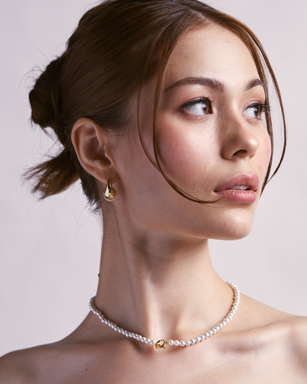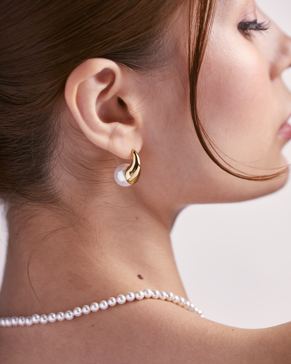 The Georgina Gold Studs are a unique and eye-catching pair of earrings featuring a curved hoop design adorned with a freshwater pearl. The asymmetrical shape and delicate pearl create a modern and stylish look.