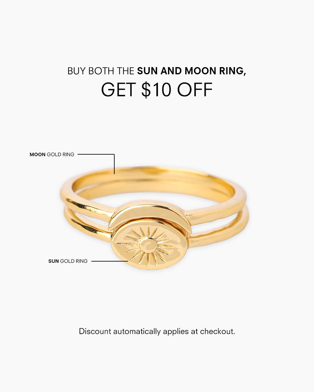 This minimalist gold ring features a crescent moon emblem, symbolizing tranquility, intuition, and inner peace. Pair it with the Sun Gold Ring for a sweet matching jewelry set.Buy both Sun and Moon Rings and get an automatic Php499 off at checkout.