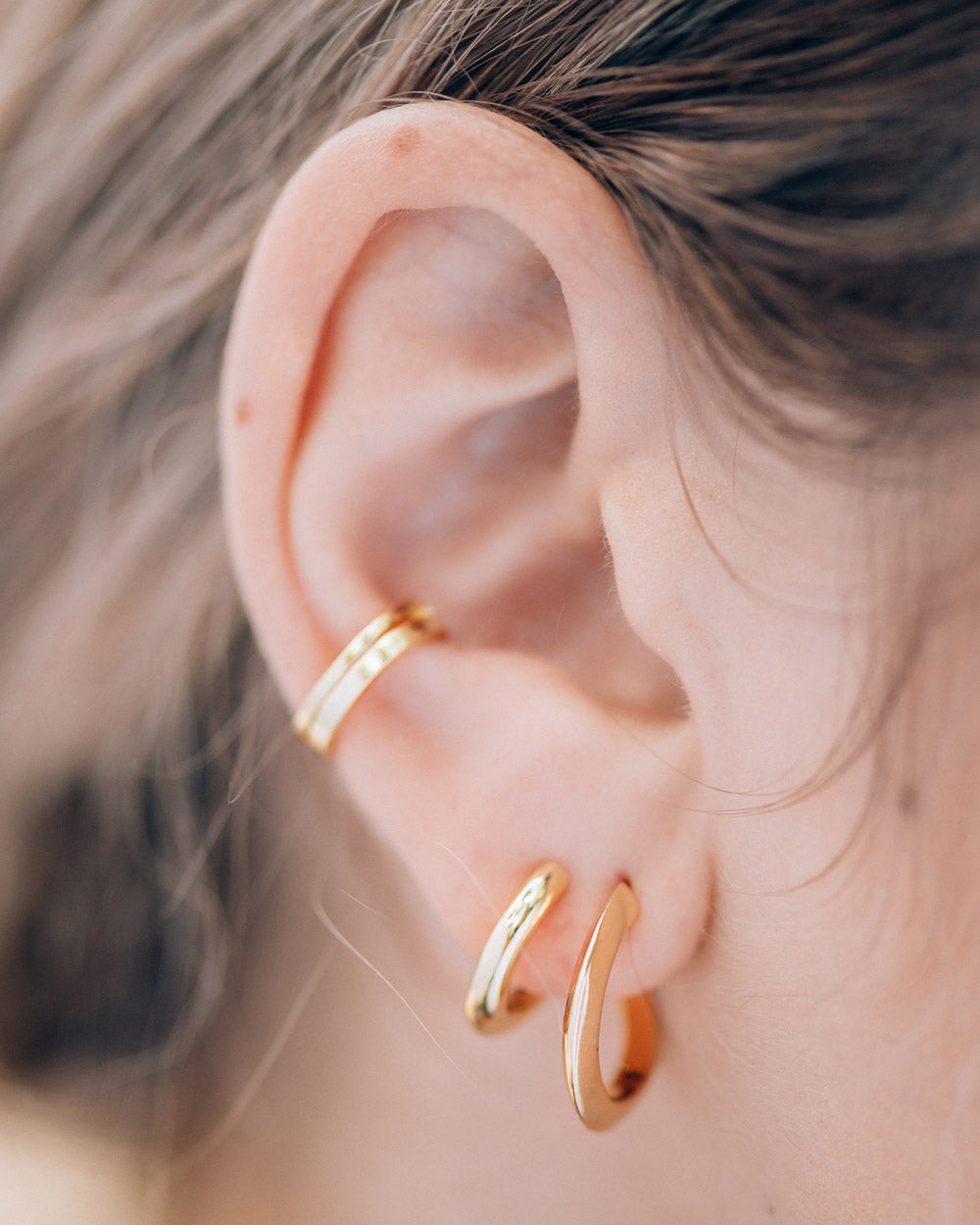 HypoallergenicIf you like the look of matching hoops and huggies, you��ll love the way these illusion earrings aesthetically mirror each other. Get that harmonious double-stacked look sans the hassle of multiple piercings with the Rachel Hoops.